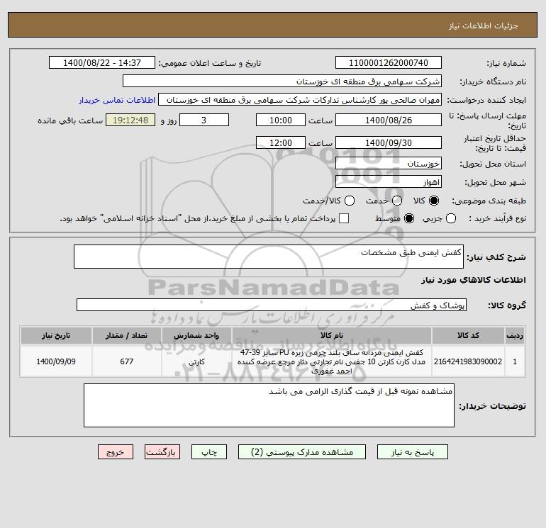 شرح کلی نیاز: کفش ایمنی طبق مشخصات