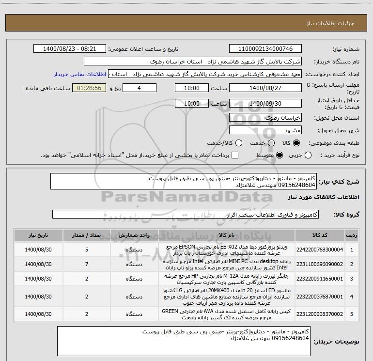 نام دستگاه خریدار:شرکت پالایش گاز شهید هاشمی نژاد استان خراسان رضوی