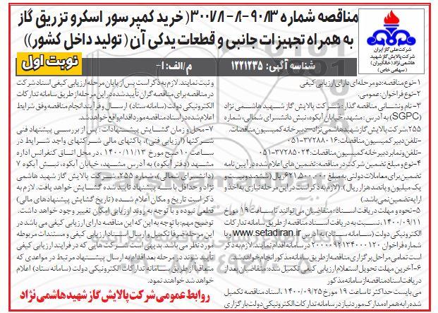 مناقصه خرید کمپرسور اسکرو تزریق گاز به همراه تجهیزات جانبی و قطعات یدکی, مناقصهف مناقصه خرید کمپرسور اسکرو تزریق گاز به همراه تجهیزات جانبی و قطعات یدکی