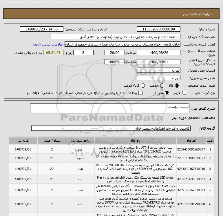 نام دستگاه خریدار: سازمان صدا و سیمای جمهوری اسلامی ایران(معاونت توسعه و فناور