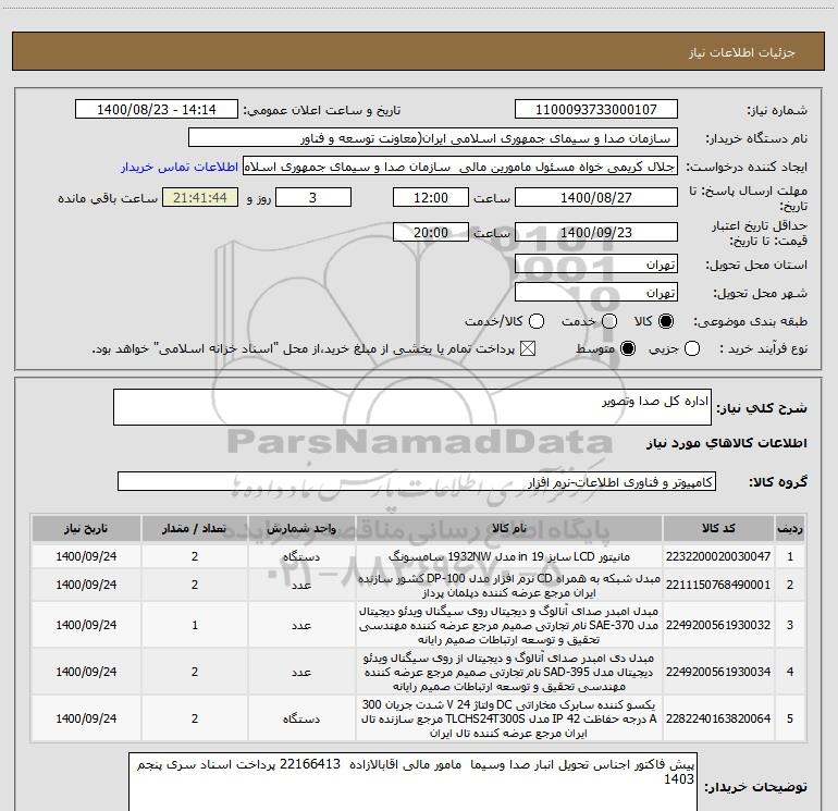 شرح کلی نیاز: اداره کل صدا وتصویر