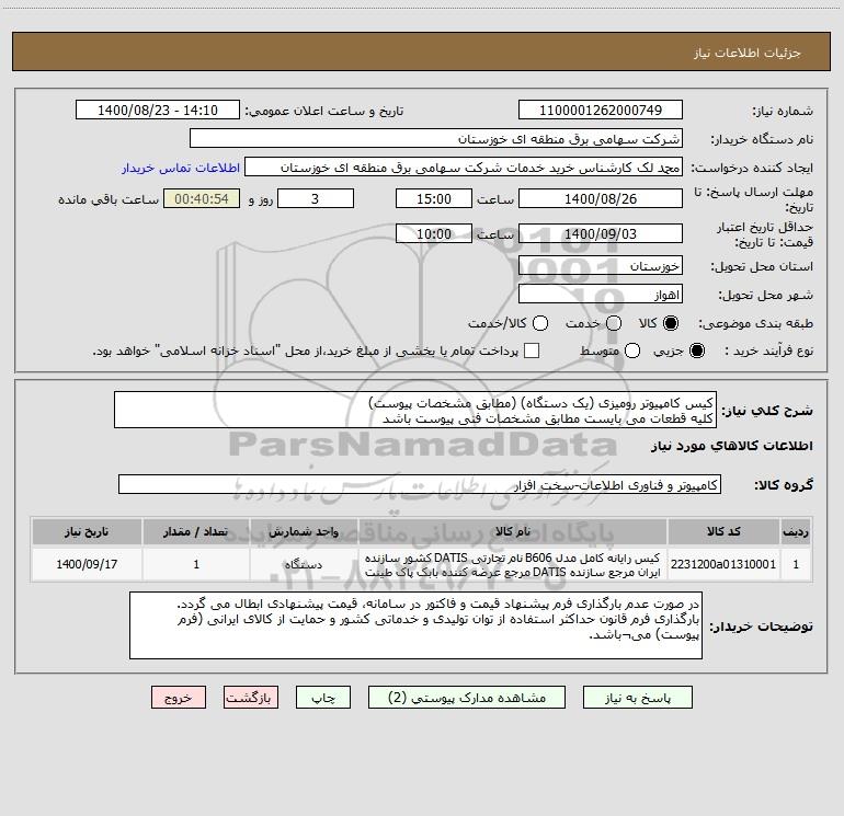 شرح کلی نیاز: کیس کامپیوتر رومیزی (یک دستگاه) (مطابق مشخصات پیوست)