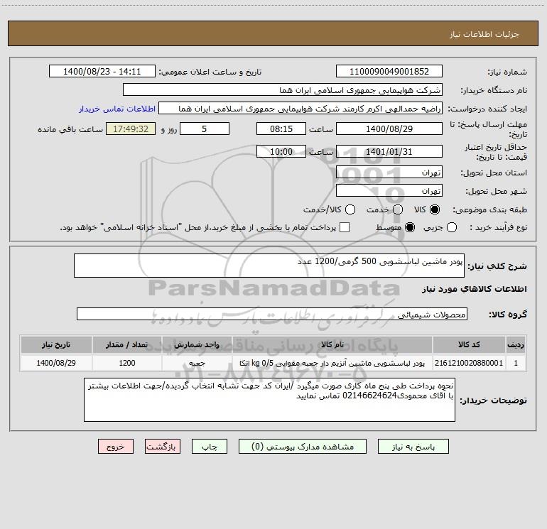 استعلام پودر ماشین لباسشویی 500 گرمی/1200 عدد , استعلام پودر ماشین لباسشویی 500 گرمی/1200 عدد