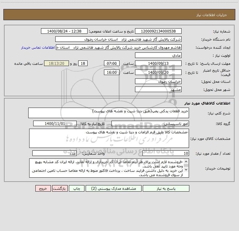 نام دستگاه خریدار:شرکت پالایش گاز شهید هاشمی نژاد استان خراسان رضوی