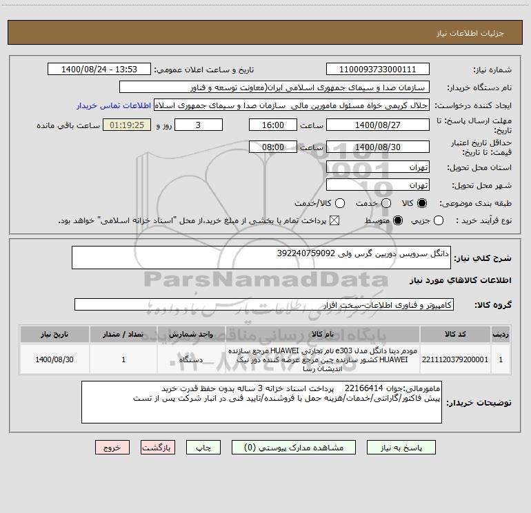 شرح کلی نیاز: دانگل سرویس دوربین گرس ولی 392240759092