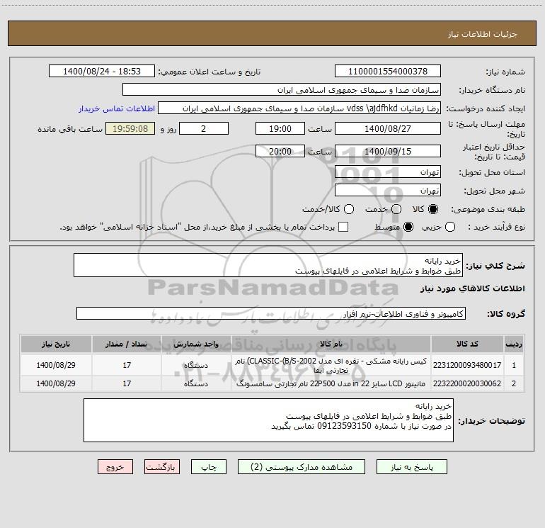نام دستگاه خریدار:سازمان صدا و سیمای جمهوری اسلامی ایران