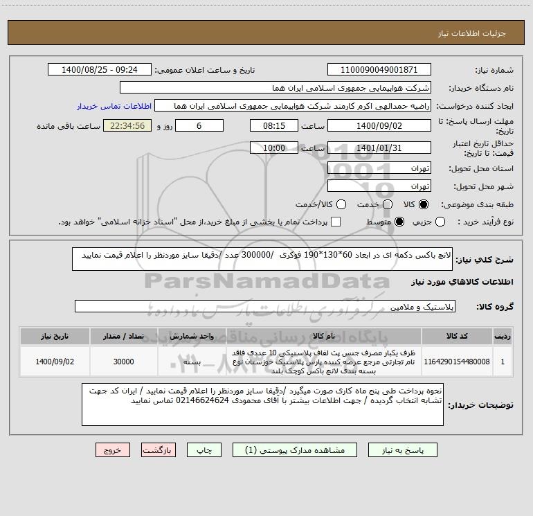 نام دستگاه خریدار:شرکت هواپیمایی جمهوری اسلامی ایران هما