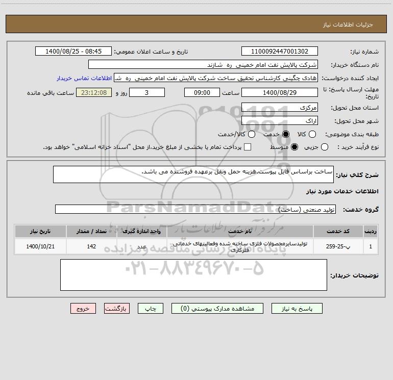 شرح کلی نیاز: ساخت براساس فایل پیوست.هزینه حمل ونقل برعهده فروشنده می باشد.