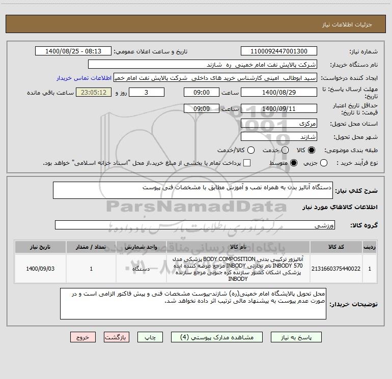 نام دستگاه خریدار:شرکت پالایش نفت امام خمینی ره شازند