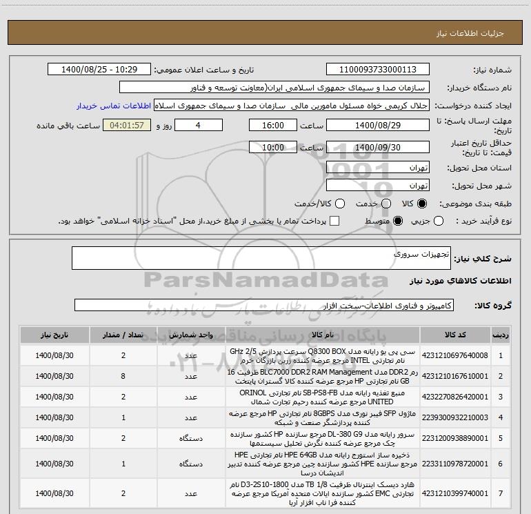 نام دستگاه خریدار: سازمان صدا و سیمای جمهوری اسلامی ایران(معاونت توسعه و فناور