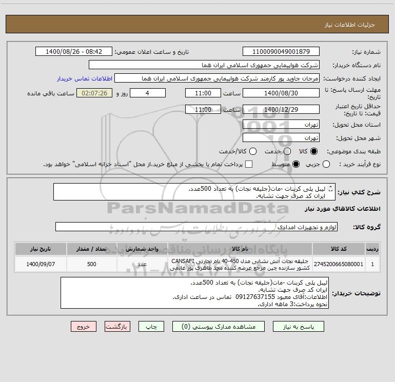 نام دستگاه خریدار:شرکت هواپیمایی جمهوری اسلامی ایران هما