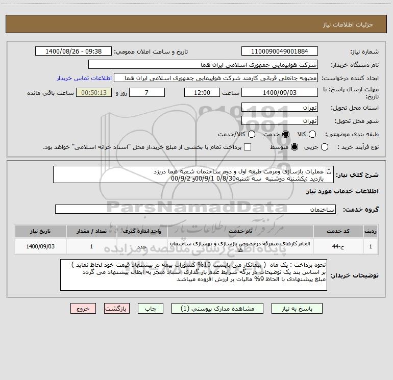 نام دستگاه خریدار:شرکت هواپیمایی جمهوری اسلامی ایران هما
