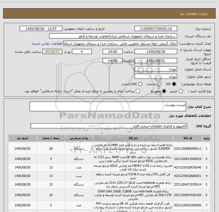 نام دستگاه خریدار: سازمان صدا و سیمای جمهوری اسلامی ایران(معاونت توسعه و فناور