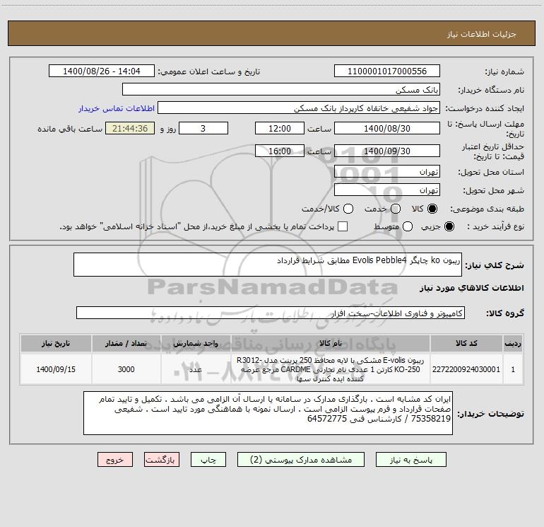 استعلام ریبون ko چاپگر Evolis Pebble4 مطابق شرایط قرارداد, استعلام ریبون ko چاپگر Evolis Pebble4 مطابق شرایط قرارداد