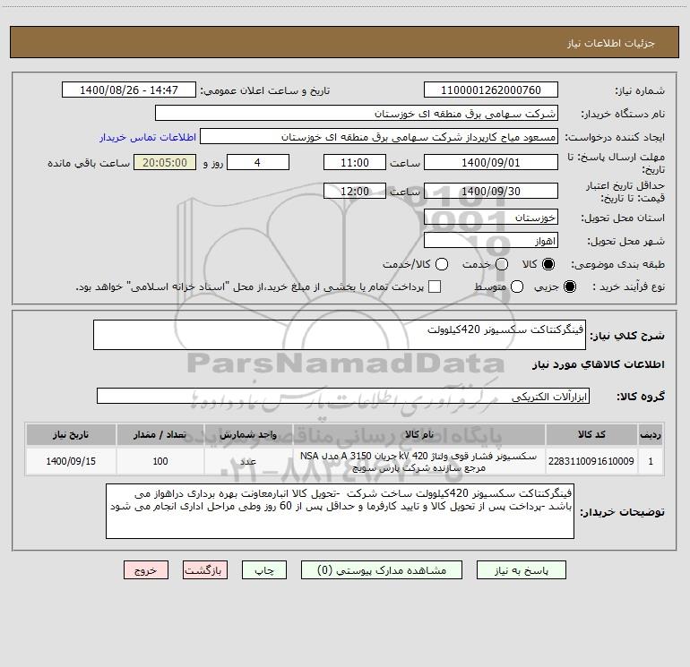 شرح کلی نیاز: فینگرکنتاکت سکسیونر 420کیلوولت