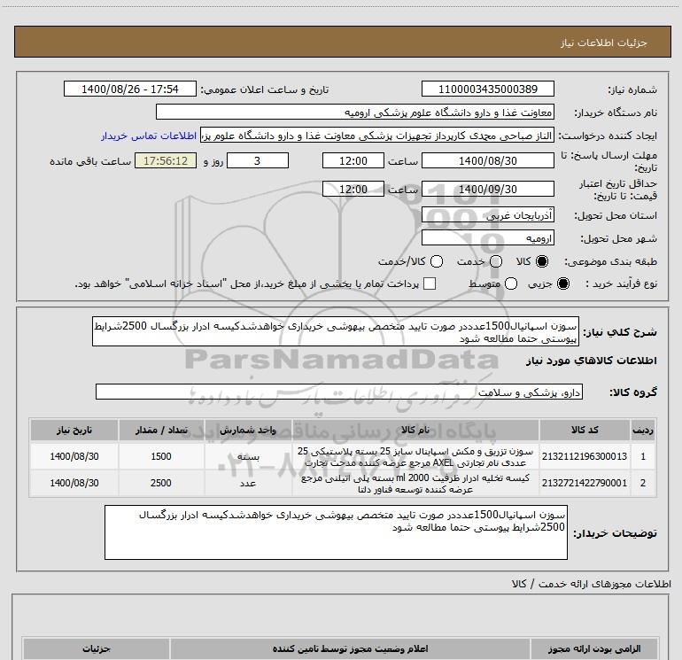 نام دستگاه خریدار:معاونت غذا و دارو دانشگاه علوم پزشکی ارومیه