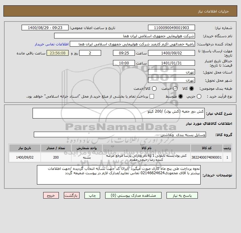 شرح کلی نیاز: کش دور جعبه (کش پول) /200 کیلو