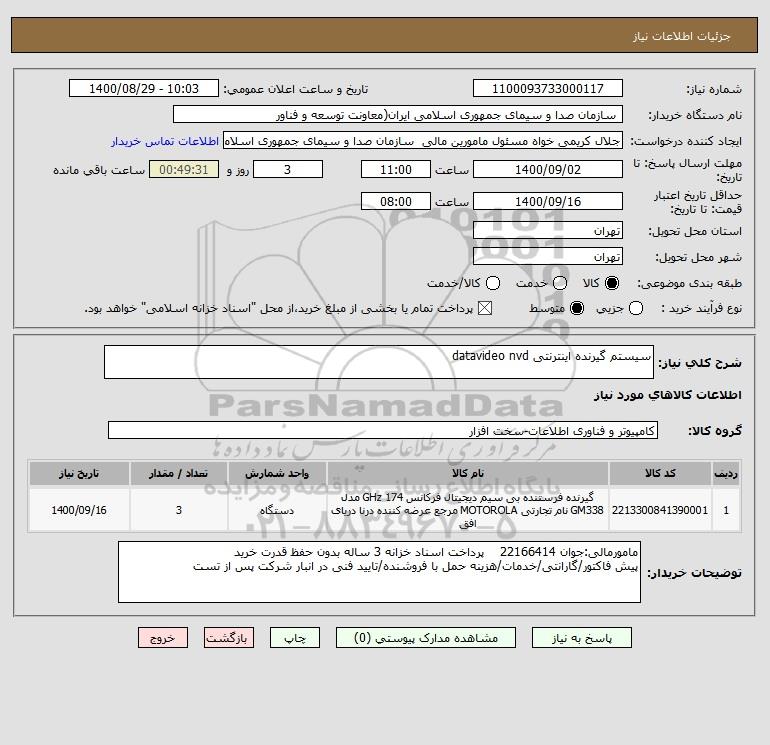 نام دستگاه خریدار: سازمان صدا و سیمای جمهوری اسلامی ایران(معاونت توسعه و فناور