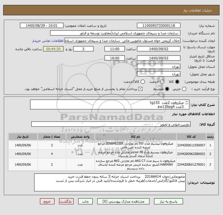 نام دستگاه خریدار: سازمان صدا و سیمای جمهوری اسلامی ایران(معاونت توسعه و فناور