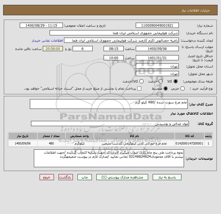 شرح کلی نیاز: تخم مرغ سورت شده /480 کیلو گرم