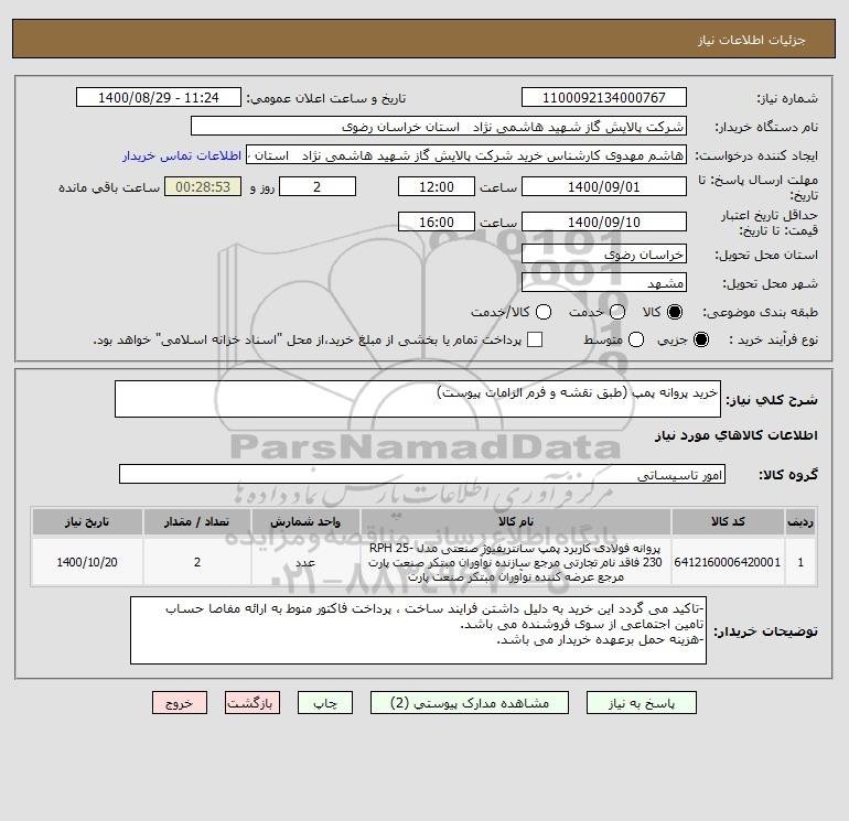 نام دستگاه خریدار:شرکت پالایش گاز شهید هاشمی نژاد استان خراسان رضوی