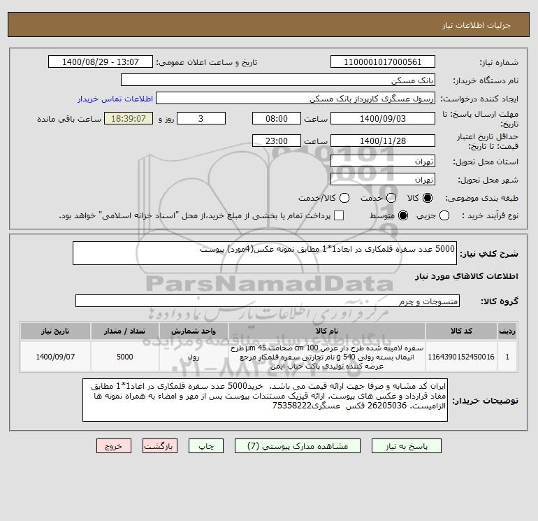 شرح کلی نیاز: 5000 عدد سفره قلمکاری در ابعاد1*1 مطابق نمونه عکس(4مورد) پیوست