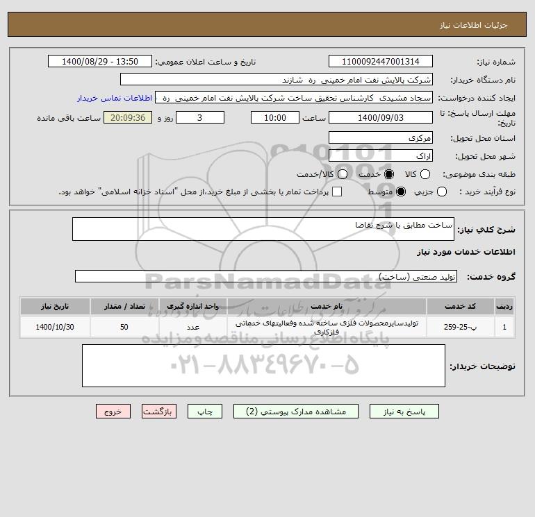 شرح کلی نیاز: ساخت مطابق با شرح تقاضا