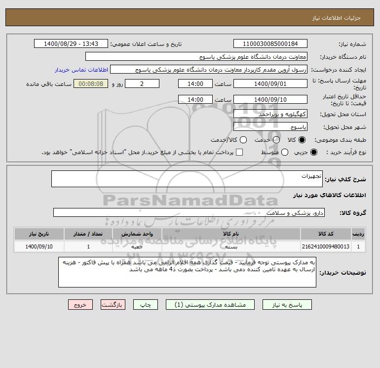 نام دستگاه خریدار:معاونت درمان دانشگاه علوم پزشکی یاسوج