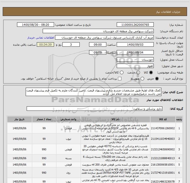 شرح کلی نیاز: کمک های اولیه طبق مشخصات مندرج درفرم پیشنهاد قیمت .تامین کنندگان ملزم به تکمیل فرم پیشنهاد قیمت می باشند درغیراینصورت مردود اعلام می گردند
