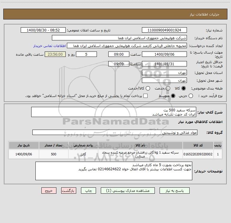 نام دستگاه خریدار:شرکت هواپیمایی جمهوری اسلامی ایران هما