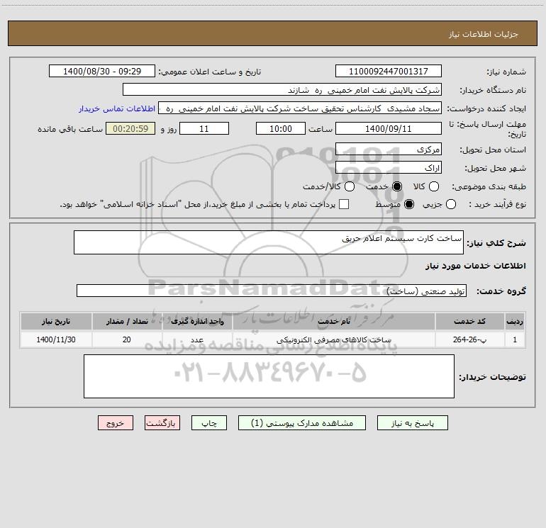 استعلام ساخت کارت سیستم اعلام حریق, استعلام ساخت کارت سیستم اعلام حریق
