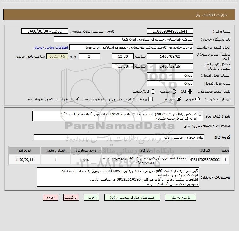 نام دستگاه خریدار:شرکت هواپیمایی جمهوری اسلامی ایران هما