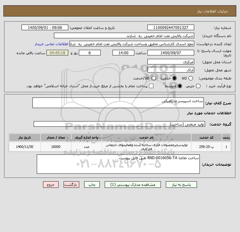 استعلام ساخت اسپیسر سرامیکی, استعلام ساخت اسپیسر سرامیکی