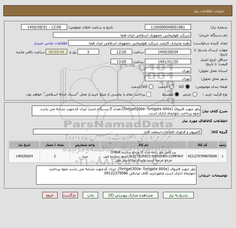 نام دستگاه خریدار:شرکت هواپیمایی جمهوری اسلامی ایران هما