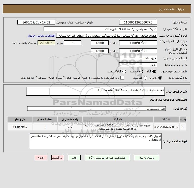 استعلام مخزن پنج هزار لیتری پلی اتیلن سه لایه ( طبرستان ), استعلام مخزن پنج هزار لیتری پلی اتیلن سه لایه ( طبرستان )