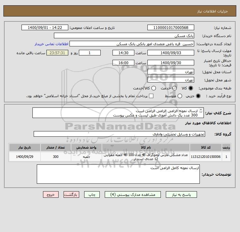شرح کلی نیاز: ارسال نمونه الزامی الزامی الزامی است