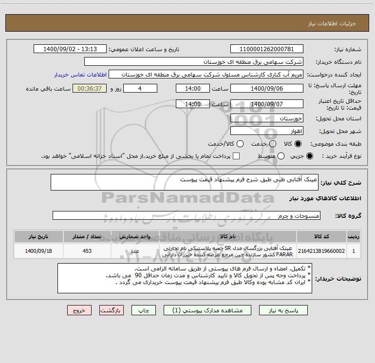 نام دستگاه خریدار:شرکت سهامی برق منطقه ای خوزستان