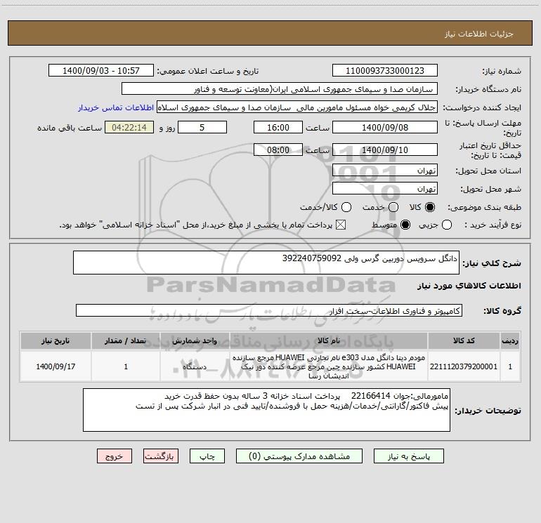 نام دستگاه خریدار: سازمان صدا و سیمای جمهوری اسلامی ایران(معاونت توسعه و فناور
