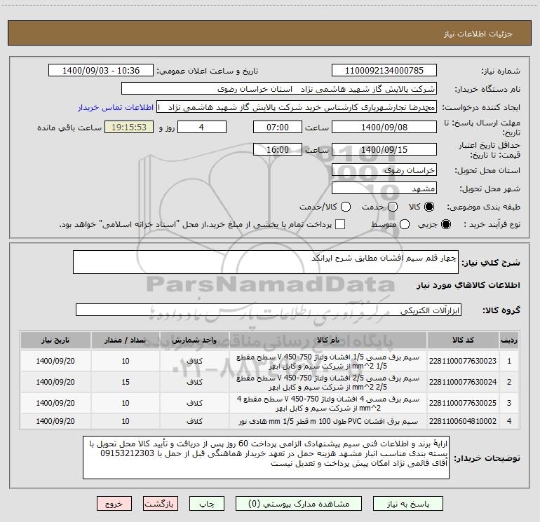 شرح کلی نیاز: چهار قلم سیم افشان مطابق شرح ایرانکد