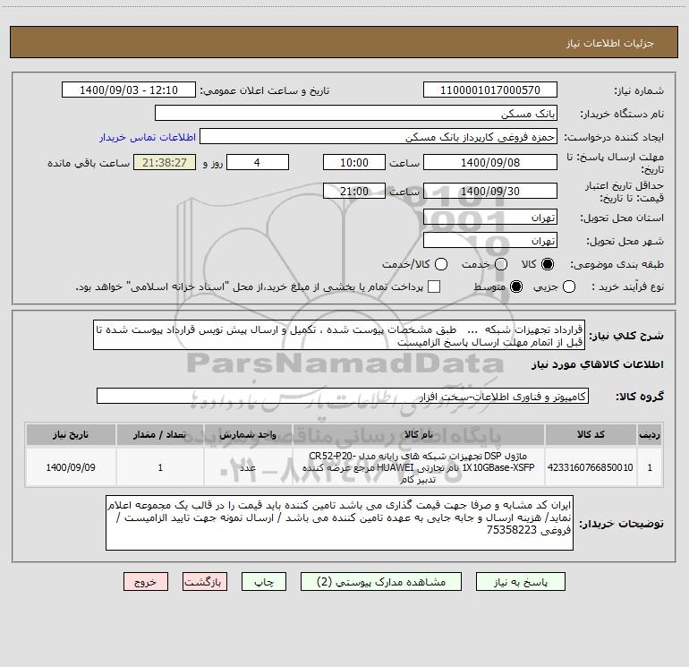 شرح کلی نیاز: قرارداد تجهیزات شبکه ... طبق مشخصات پیوست شده ، تکمیل و ارسال پیش نویس قرارداد پیوست شده تا قبل از اتمام مهلت ارسال پاسخ الزامیست