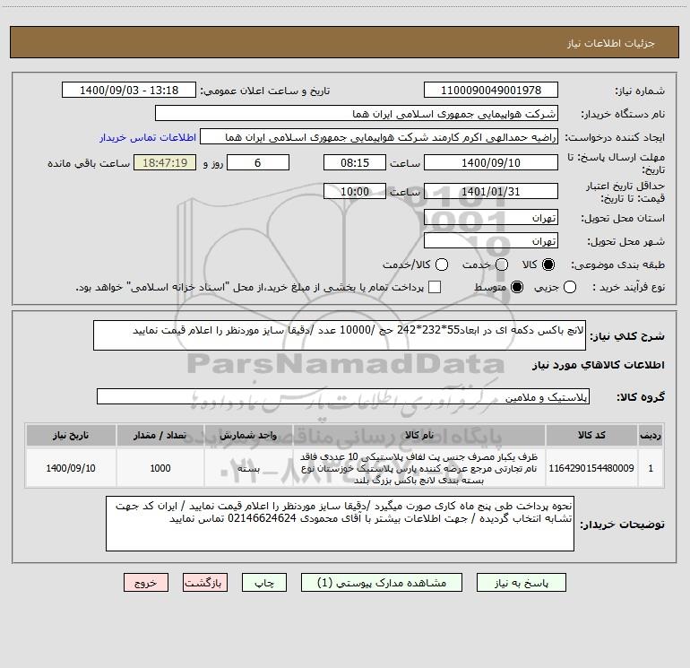 نام دستگاه خریدار:شرکت هواپیمایی جمهوری اسلامی ایران هما