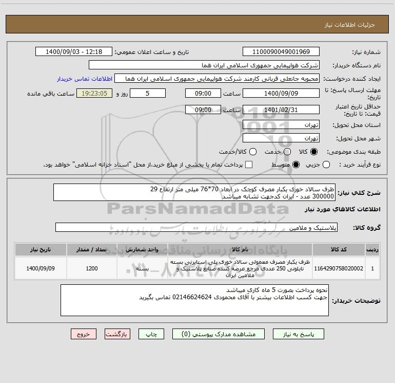 نام دستگاه خریدار:شرکت هواپیمایی جمهوری اسلامی ایران هما