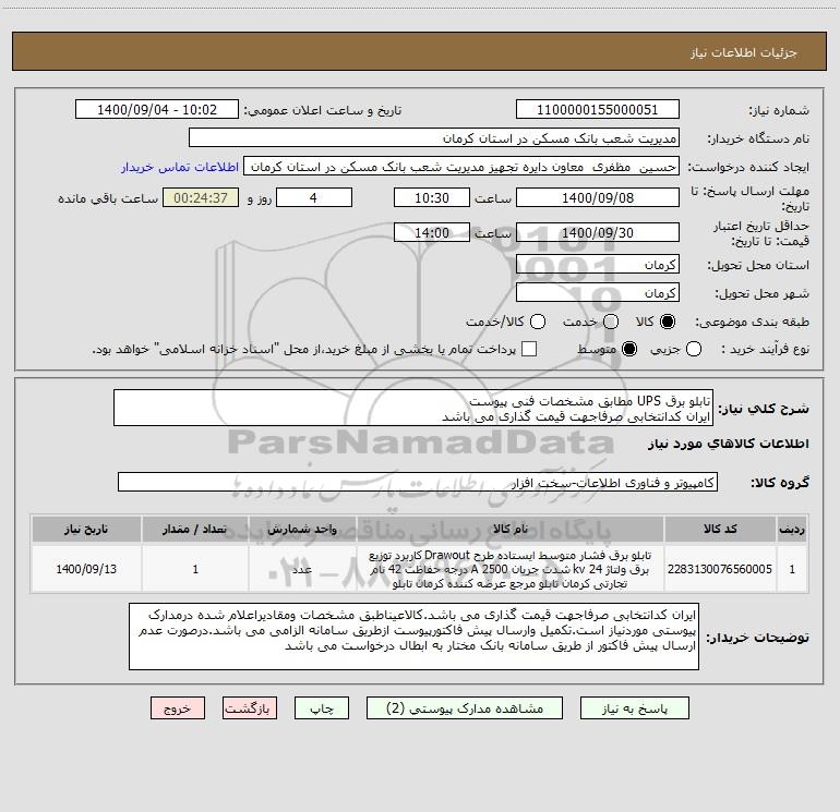نام دستگاه خریدار:مدیریت شعب بانک مسکن در استان کرمان