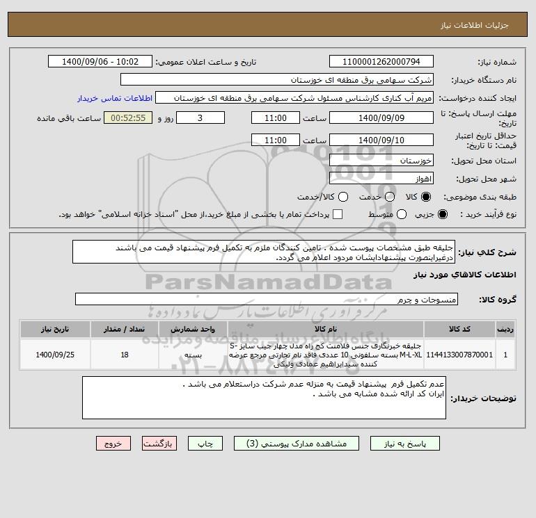 نام دستگاه خریدار:شرکت سهامی برق منطقه ای خوزستان