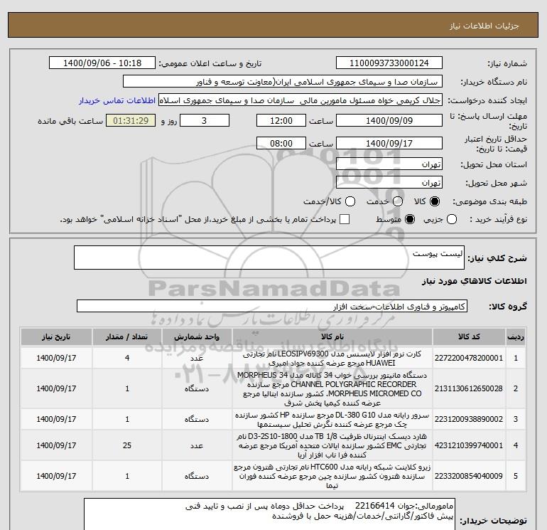 نام دستگاه خریدار: سازمان صدا و سیمای جمهوری اسلامی ایران(معاونت توسعه و فناور