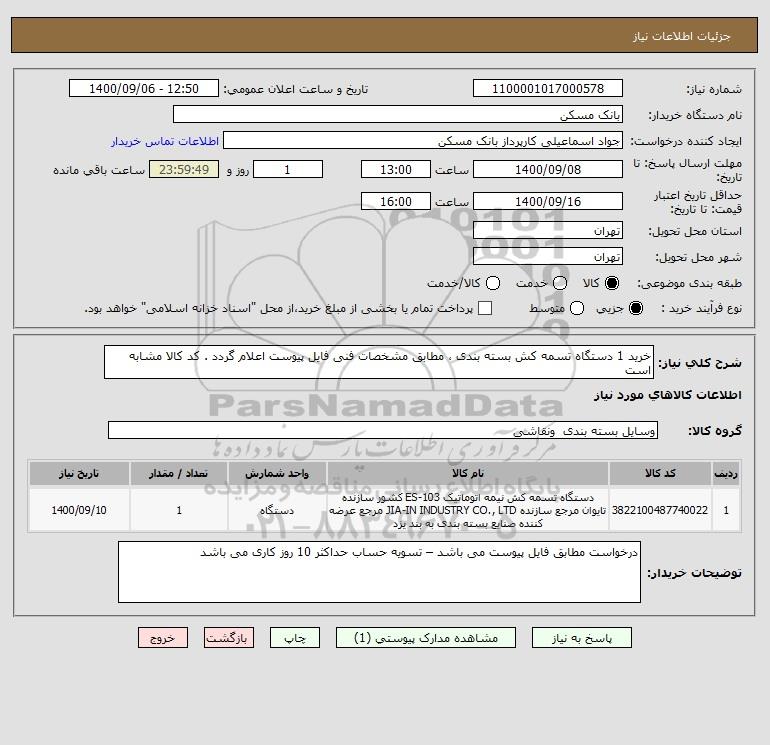 نام دستگاه خریدار:بانک مسکن