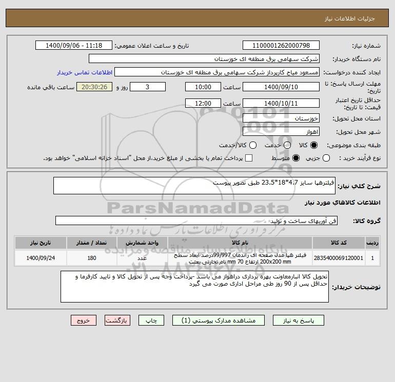 نام دستگاه خریدار:شرکت سهامی برق منطقه ای خوزستان