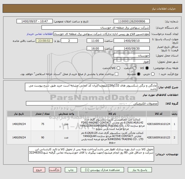 شرح کلی نیاز: مادگی و نرگی سکسیونر های 132و230کیلوولت/ایران کد انخابی مشابه است خرید طبق شرح پیوست می باشد