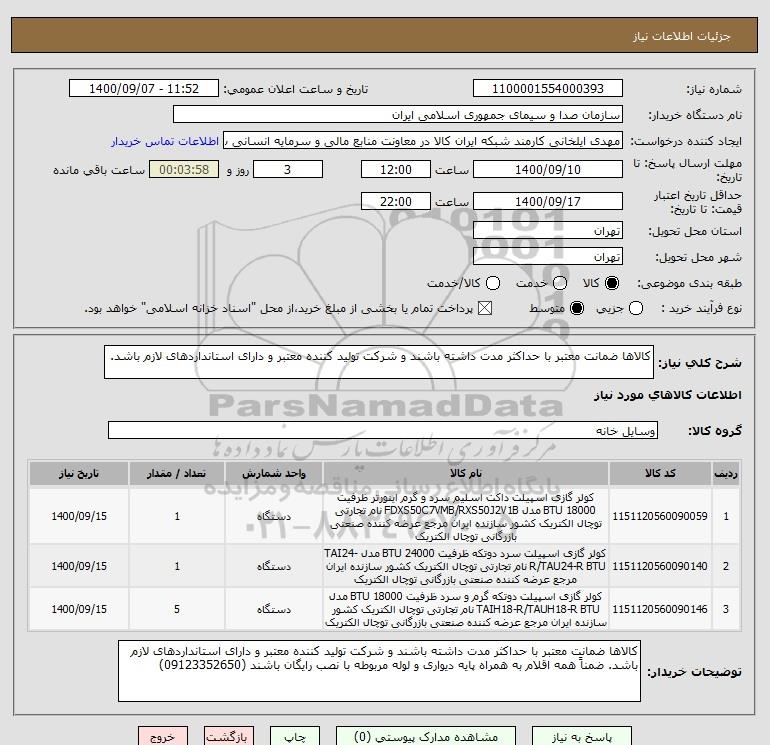 نام دستگاه خریدار:سازمان صدا و سیمای جمهوری اسلامی ایران