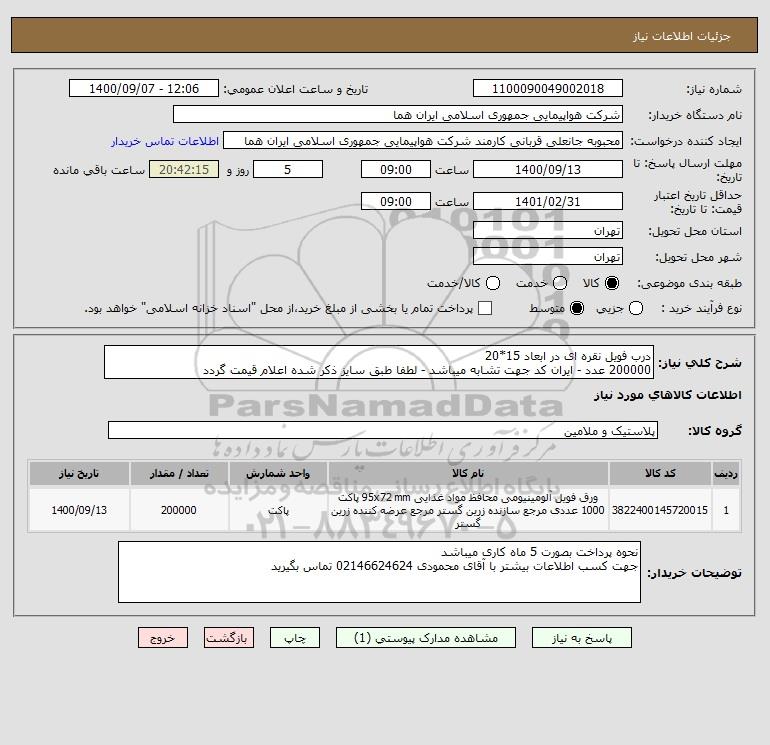 نام دستگاه خریدار:شرکت هواپیمایی جمهوری اسلامی ایران هما